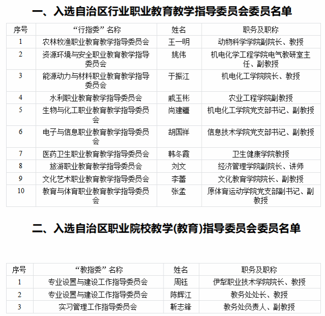 附:1.入选自治区行业职业教育教学指导委员会委员名单