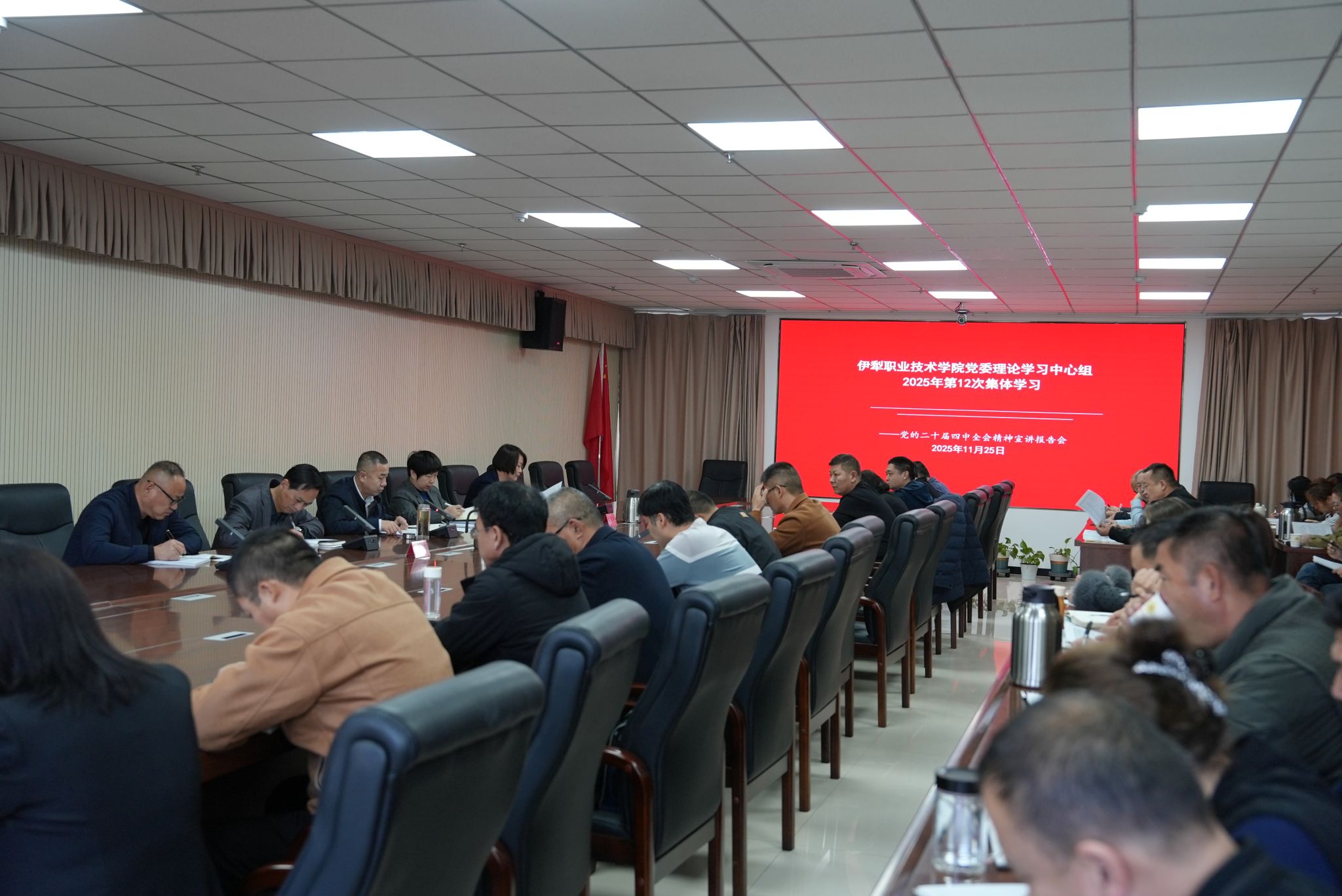 伊犁职业技术学院党委理论学习中心组11月25日举行专题学习会,深入学习贯彻党的二十届四中全会精神,特别是习近平总书记重要讲话精神,校党委书记胡毅涛作专题宣讲。全体中心组成员,中层以上干部参加会议。