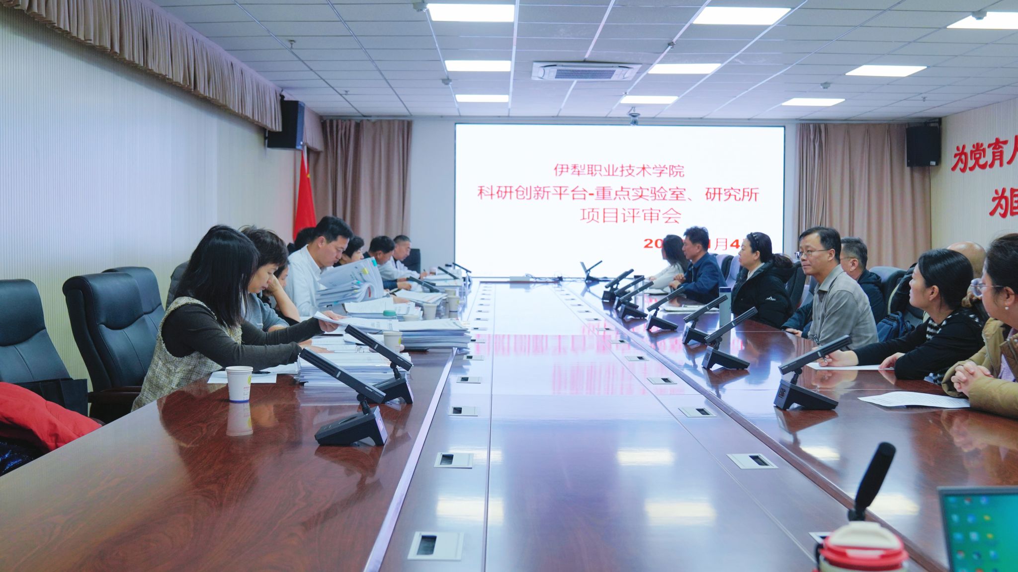 为系统总结年度科研工作,科学谋划“十五五”发展,2026年1月4日,伊犁职业技术学院科研创新平台年度考核答辩会在行政楼三楼二号会议室顺利举行。学院党委副书记、院长周钰,副院长高大响,副院长陈华北出席总结会议,与5位特邀评审专家共同听取了各科研平台的年度工作汇报。全院4个伊犁州重点实验室、20个校级研究所、3个新疆“天山英才”和2个伊犁州大师工作室负责人、成员参加了答辩。