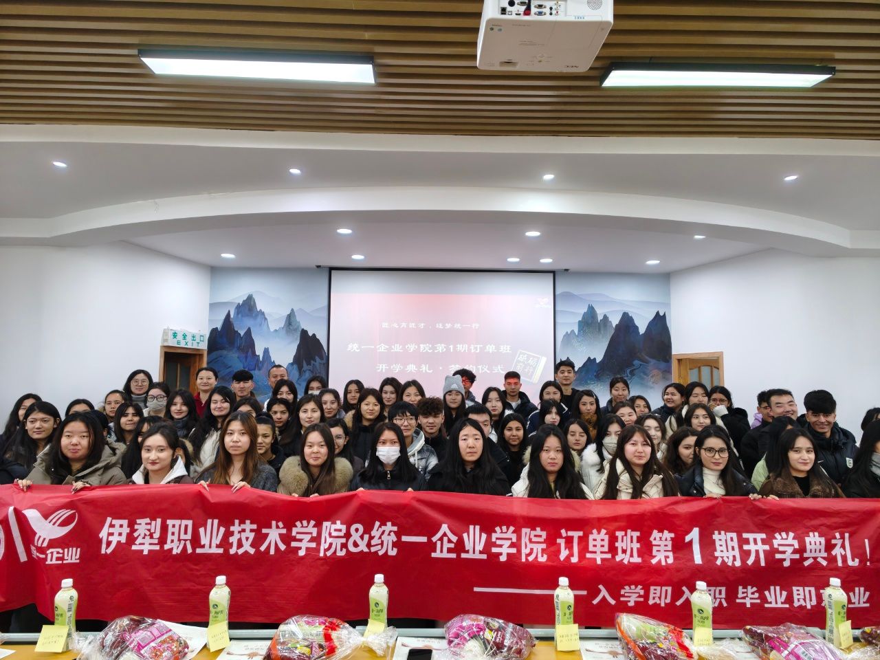 为深化产教融合、校企合作,拓宽学生就业渠道,提升人才培养质量,2025年12月29日,伊犁职业技术学院农业工程学院与统一企业(中国)投资有限公司隆重举行订单班签约仪式,现场与 14 名学生签订培养协议并发放录取通知书,两个在校班级共计 80名学生共同观摩了这一重要时刻。