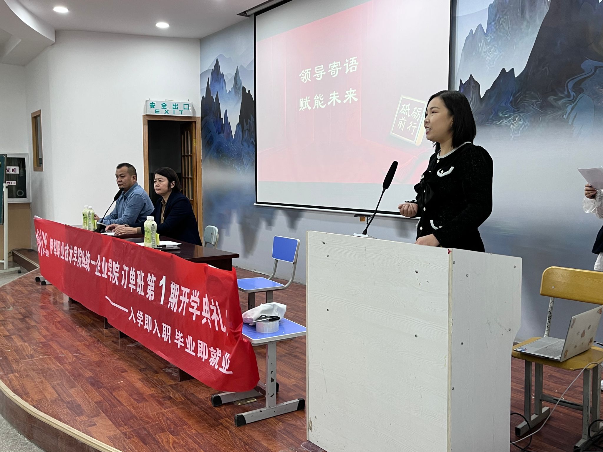 仪式伊始,伊犁职业技术学院副院长王春先院长发表热情洋溢的致辞,对统一公司一行的到来表示热烈欢迎,并介绍了学校在专业建设、人才培养等方面的成果。她强调,订单班模式是学校与企业深度合作的重要举措,能够精准对接企业需求,实现人才培养与企业发展的无缝衔接。希望同学们珍惜机会,努力学习,在订单班中成长为符合企业要求的高素质技能型人才。