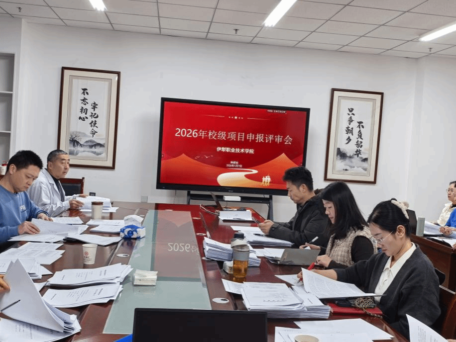 2026年1月7日,伊犁职业技术学院2026年度校级科研项目申报评审会在学院顺利举行。本次答辩涵盖自然科学、教育教学改革、党建思政三大类别,共计64个项目参与评审。答辩活动为期一天,学院领导、评审专家及各课题负责人与会。