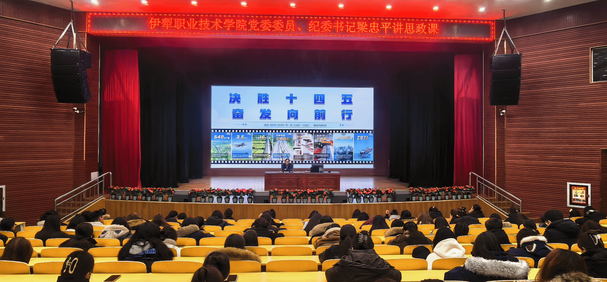 为深刻把握国家职业教育发展大势,科学谋划学校未来发展规划,凝聚全校师生奋进力量,2026年1月9日上午,在学校大礼堂隆重举行“决胜十四五,奋发前行”专题辅导讲座。讲座由学校党委委员、纪委书记梁忠平主讲,文化教育学院500余名师生聆听了讲座。