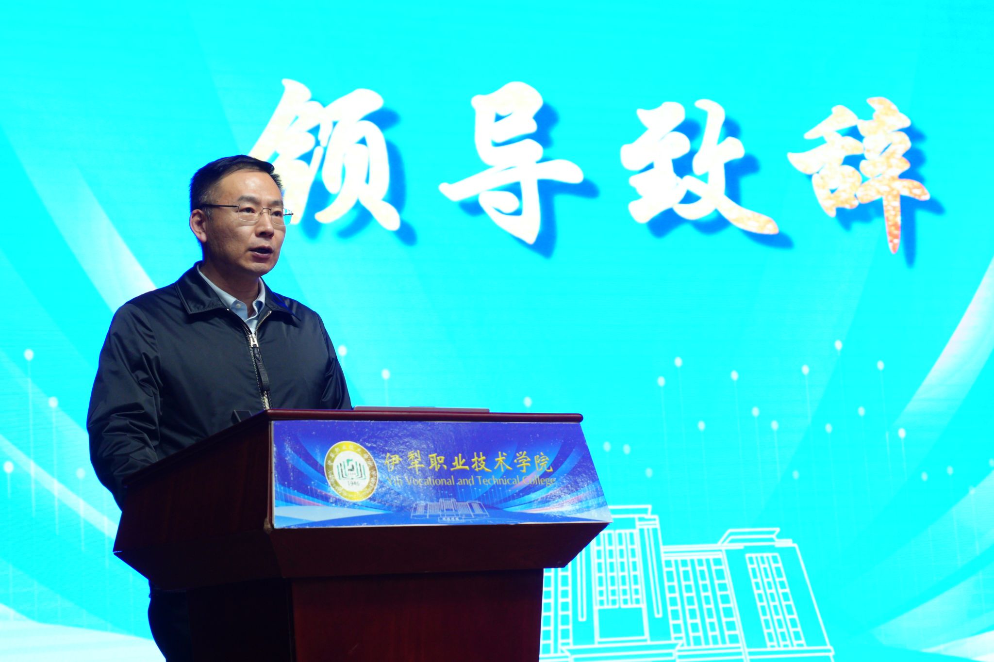 伊犁州教育局党组成员、副局长王嵘同志出席大会并致辞。致辞中充分肯定学院办学成果,强调职业教育需紧密对接区域产业需求,为伊犁州经济社会发展提供高素质技术技能人才支撑。